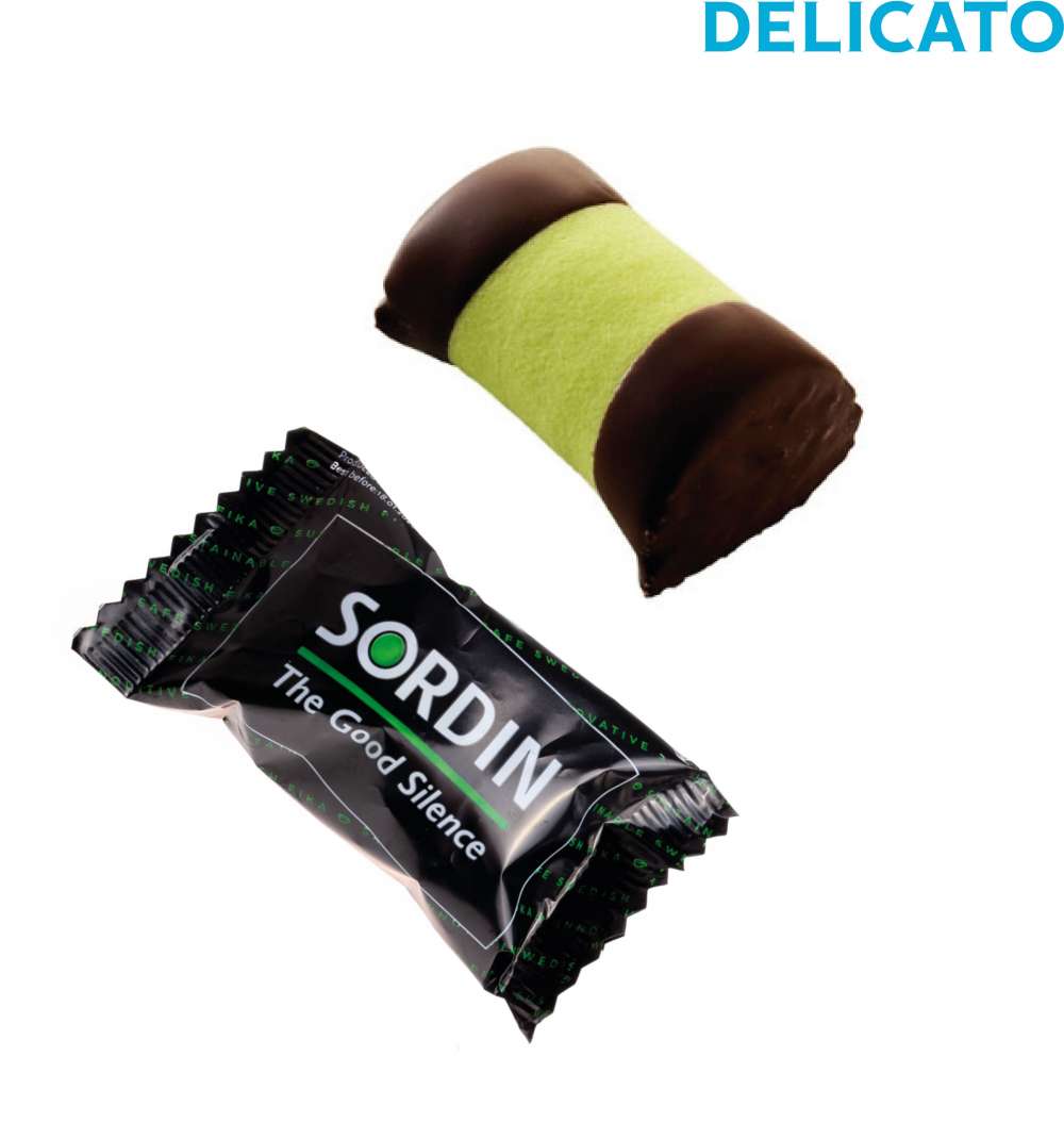 Liten punschrulle från Delicato med eget tryck på omslaget.