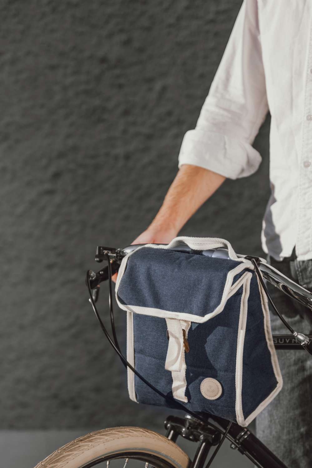 Denna moderna och stilrena kylväska passar perfekt till utflykten. Insidan är lätt att torka ur och kylan bevaras länge tack vare den tjocka PEVA-vadderingen. Kardborre på baksidan av väskan gör det möjligt att fästa väskan på styret av cykeln.