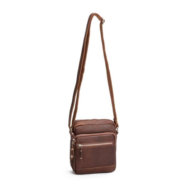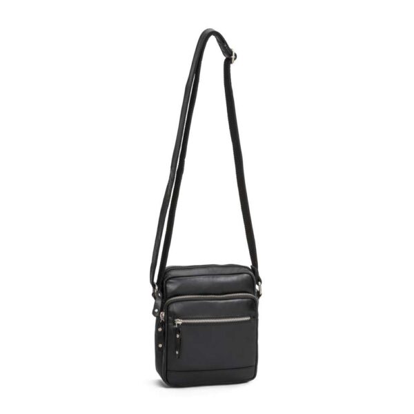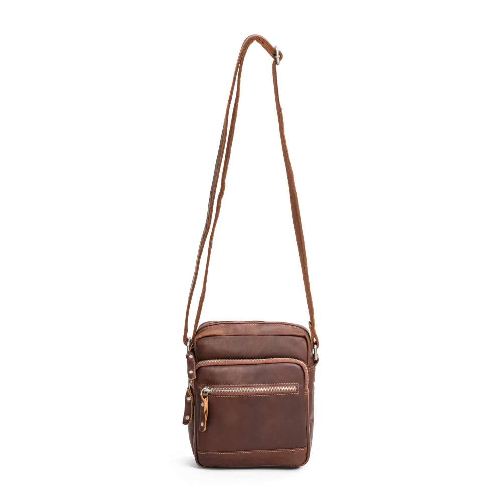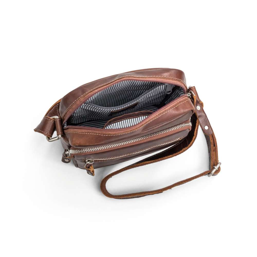 buffelskinn. Den har två utvändiga dragkedjefack,