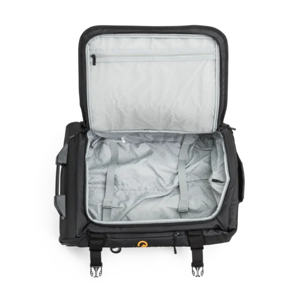 Allsidig och praktisk ryggsäck med hjul – perfekt för flexibel resa. Ryggsäcken kan bäras som en ryggsäck eller rullas som en kabinväska. Axelremmarna kan enkelt gömmas bakom en dragkedja när väskan rullas.Tillverkad i slitstarkt och vattenavstötande 900D coated material. Stort huvudfack och flera organiserande fickor ger bra översikt och funktionalitet. Väskan har en praktisk meshlomme i locket för extra förvaring. Godkänd som kabinväska hos de flesta flygbolag, inklusive Norwegian, SAS och Ryanair. 5 års garanti.