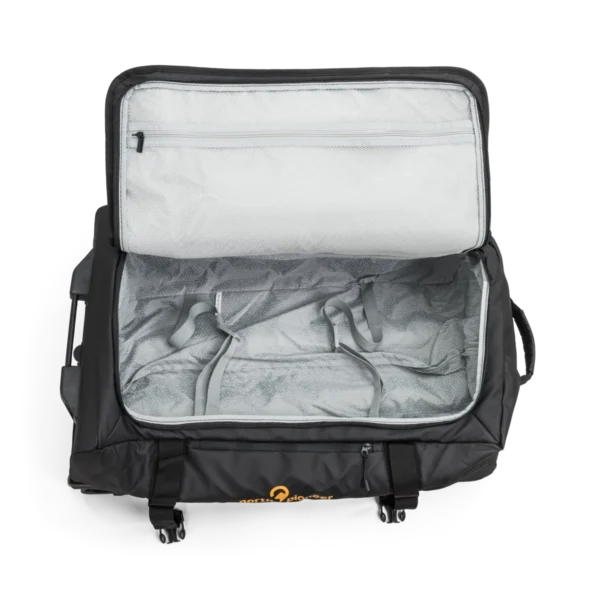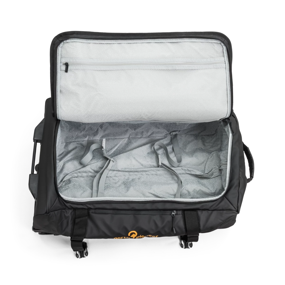 Praktisk och rymlig hjulbag, designad för resor och äventyr. Tillverkad i slitstarkt och vattenavstötande 900D coated material. Väskan har ett stort huvudfack, flera organiserande fickor och en meshlomme i locket för extra förvaring. 5 års garanti