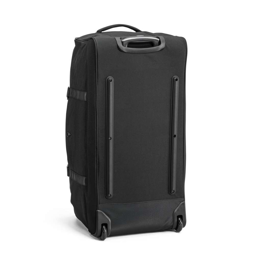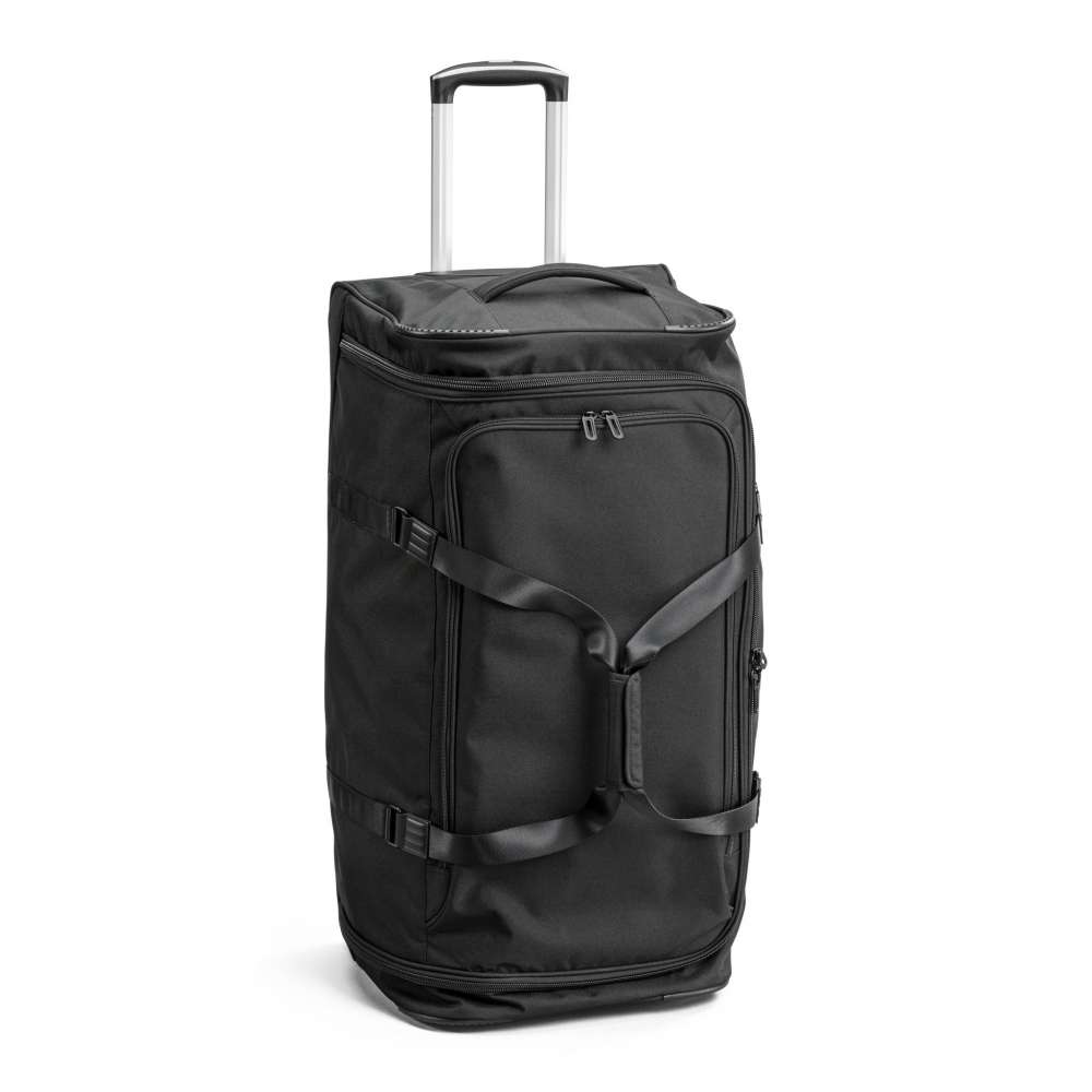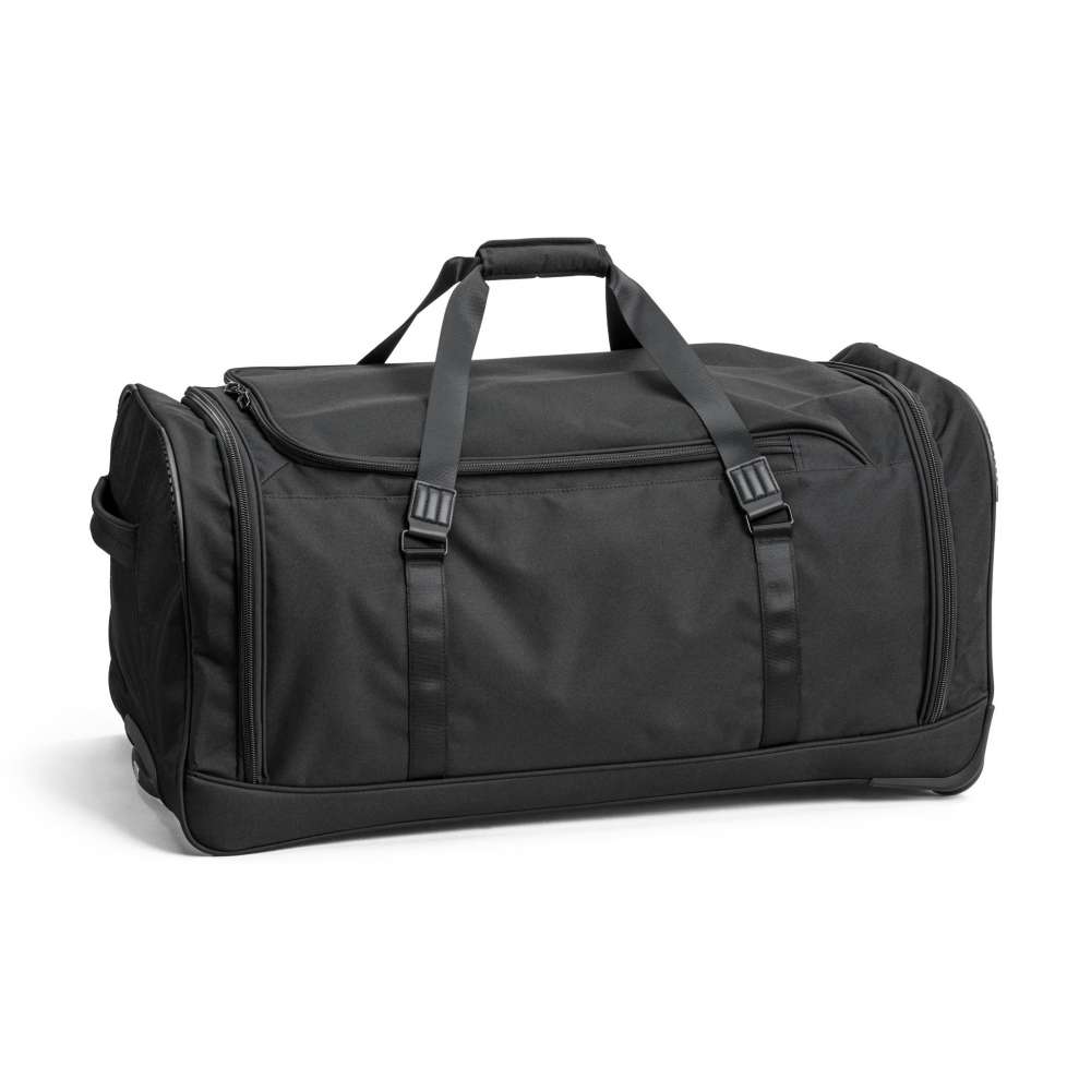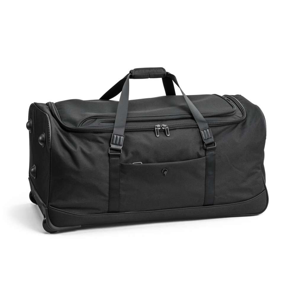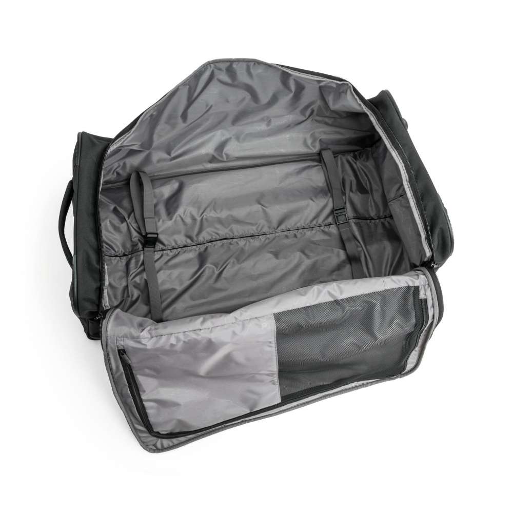 Rymlig duffelbag, från North Pioneer, med draghandtag och hjul. Volymen är 117 liter fördelat på ett stort fack och en rymlig ytterficka. Tvåstegs draghandtag och hjul som möjliggör bekväm transport på släta underlag. Dubbla spännband, stor nätficka och blixtlåsficka för att kläder och dylikt ska hållas på plats i väskan. Bekväma bärhandtag upptill och på kortsidan gör väskan smidig att hantera vid in- och urlastning. Plastfötter gör att väskan kan stå upprätt stadigt. Finns i två olika storlekar.